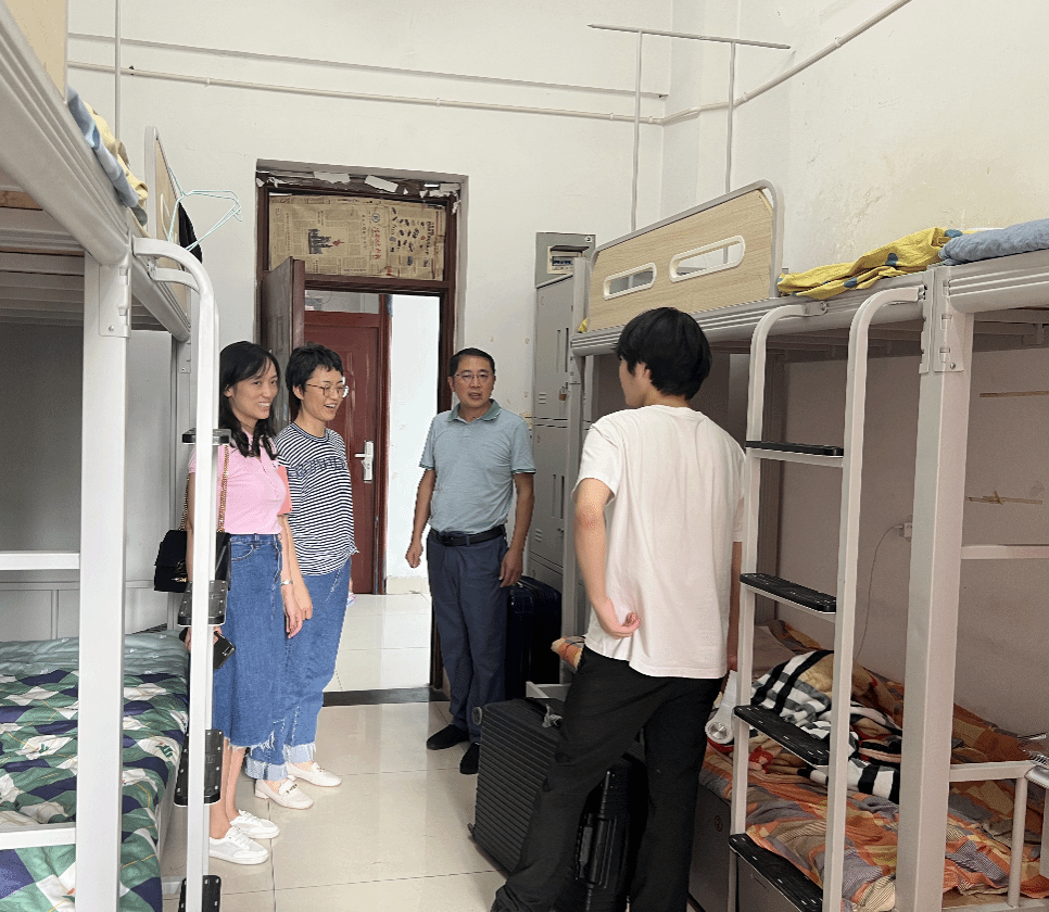 9月10日下午,数字经贸与管理学院院长王浩澂、党总支书记王霖、副书记何酉宁与新生班级辅导员来到宿舍寝室,看望学院2023级500余名新生。