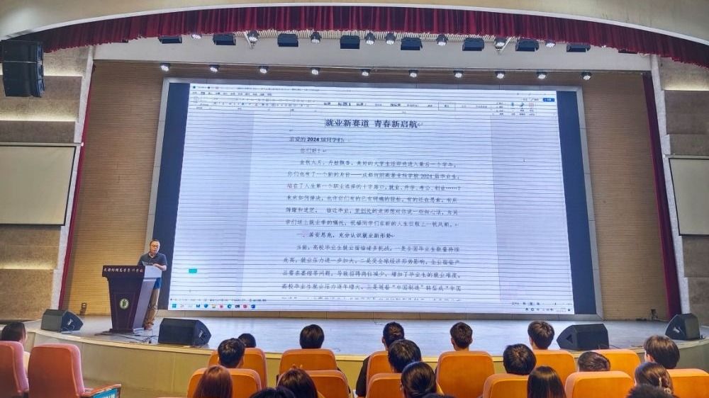 9月19日下午,电气信息工程学院在多功能厅举行了2024届毕业生就业动员会,学院党总支书记姚玲峰、毕业班辅导员和500余名大三毕业生到场参会,会议由学院就业辅导员周惟媛主持。