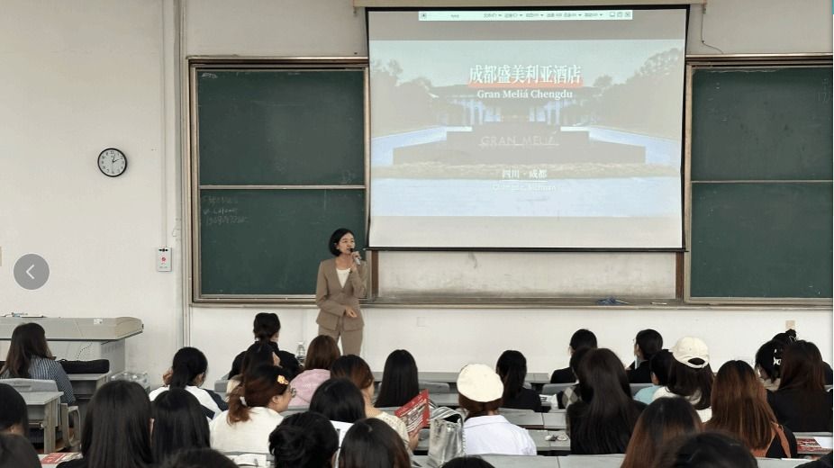 双选会上,四川青鸟网络科技有限公司、四川好一点世纪教育科技有限公司、永康市久久太阳电子商务有限公司、成都盛美利亚酒店、成都瑞吉酒店、成都海湾半山酒店管理有限公司、成都许家菜餐饮管理有限公司、成都德音电子商务有限公司等企业代表宣讲了企业基本情况,工作环境、招聘岗位、薪资待遇等同学们关心的问题。同学们认真聆听,对就业形势、岗位能力要求有了进一步了解,并积极与企业互动。