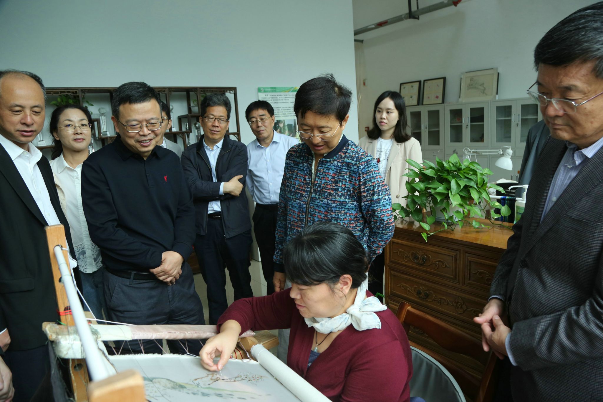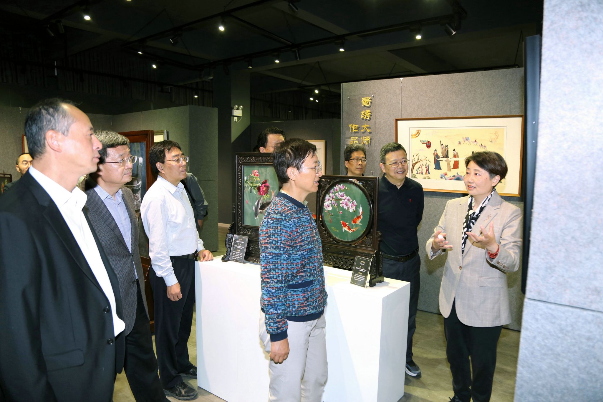 我校党委书记蔡玉波、副校长宋超等陪同王随莲一行实地考察了学校校史馆、西南纺织品检测检验中心、数字化纺织品快速出样中心、蜀绣研究中心和中法施耐德基地,并以“老、特、高、新”为关键词,介绍了学校80余年的发展历史和鲜明的办学特色,介绍了学校近年来推进职普融通、产教融合、科教融汇,培养高素质技术技能人才,服务轻工纺织产业发展,以及深耕纺织非遗技艺传承与创新、弘扬中华优秀文化等工作情况。