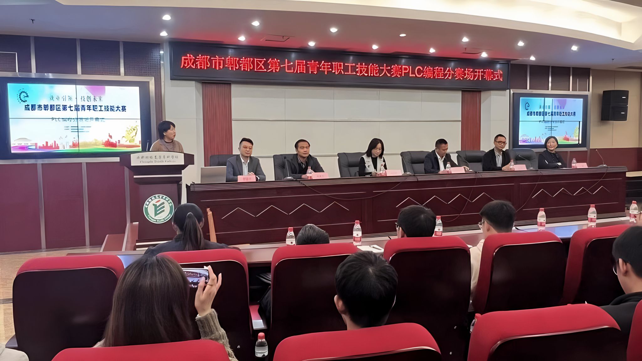 10月17日,成都市郫都区第七届青年职工技能大赛PLC编程竞赛开幕式在我校举行。郫都区就业局局长蔡昌林、局长钟小燕,智能制造产业协会秘书长马骏,我校智能制造与装备学院院长罗纲等出席开幕式。来自郫都区专精特新企业的38名技术骨干参加了本次比赛。