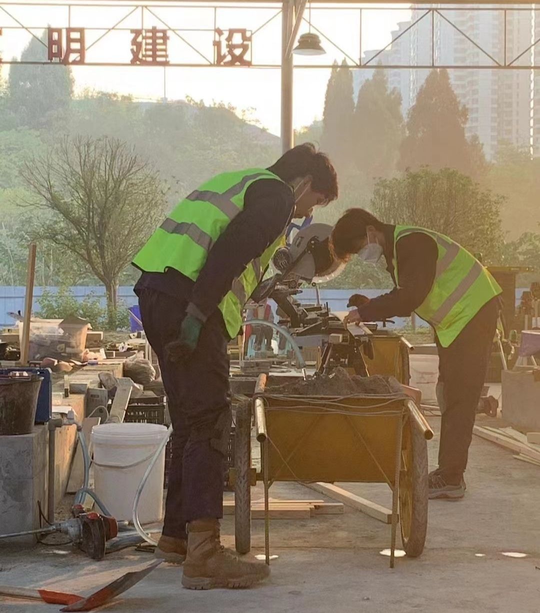 本次比赛包含施工图绘制和施工实操环节,其中施工实操环节要求两位选手在11小时内,共同完成5m*5m的庭院施工,内容包括砌筑(创意景墙、水景墙)、木作(木平台、木座凳)、地铺(花岗岩、透水砖、小料石)、水景、绿化项目,两位选手动作高效、手艺精湛、作品整洁、协作默契,获得全场称赞。我校选手在赛场充分展现了扎实的专业基础、良好的技能素养和职业操守。