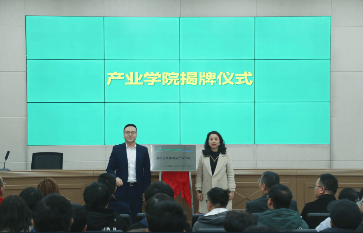 12月12日下午,电气信息工程学院输配电装备制造产业学院第一届理事会第一次会议在我校明德楼二楼阶梯教室召开。大会审议通过输配电装备制造产业学院理事会章程,选举产生第一届理事会成员、副理事长、理事长,商议确定副院长、院长以及产业学院专业建设委员会组成人员,在组织机构保障、体制机制建设等方面为输配电装备制造产业学院实体化、规范化运行奠定了坚实基础。会上举行了产业学院揭牌仪式。