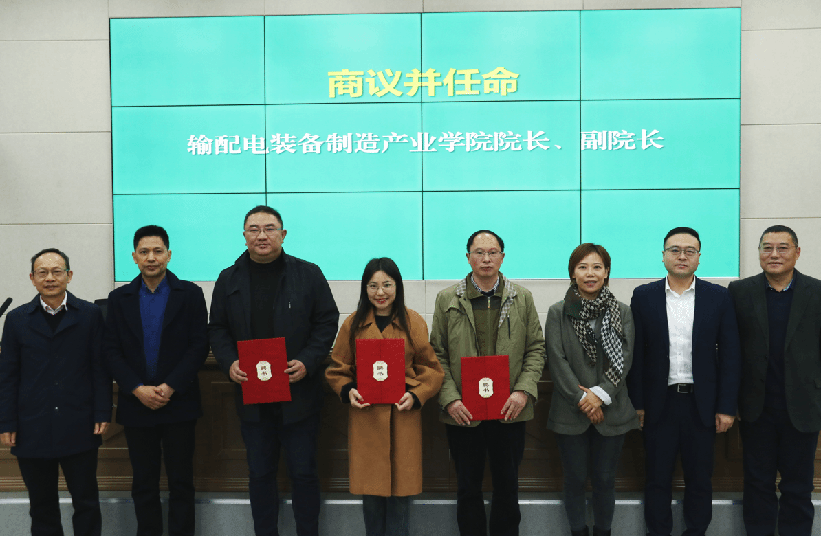 张江婴、张爱宝共同为产业学院揭牌。会议选举我校副校长宋超为输配电装备制造产业学院理事会理事长,企业方张爱宝、许屾为副理事长,并选举出理事会成员。会议研究确定了丁韬为产业学院院长,何依、李忠炳为副院长。
