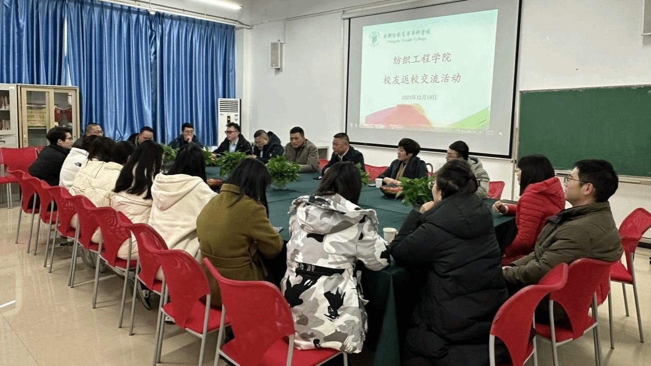为进一步促进校友之间、校友与母校间的互动交流,纺织学院于12月19日邀请成都宏冠服饰董事长赵作虎、四川省俏佳人织业有限公司总经理李清蓉、陶醉天下实业有限公司品牌负责人王静等10余名校友返校共聚、畅叙情谊、共话发展,重拾成纺记忆。学校党委副书记周红、校友办主任隗送爽,纺织学院党政班子成员、教师代表参加活动。