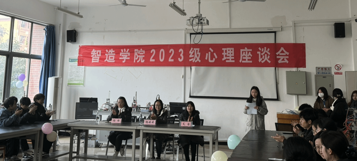12月26日下午,智能制造与装备学院在北苑实训楼B206成功举行心理座谈会。学创处心理健康教育中心杨婷婷老师、学院心理健康教育工作专项负责人艾洁老师、2023级新生辅导员杨梅老师和2023级各班班长、心理委员参加座谈。