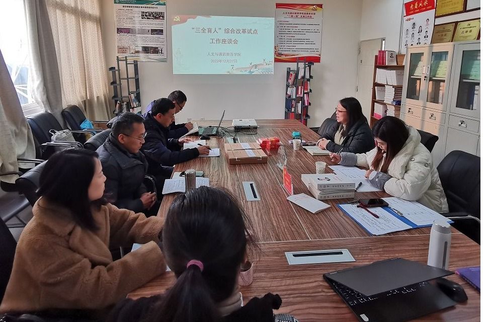 12月27日,人文与通识教育学院召开“三全育人”工作交流会。学校宣传统战部副部长王歆一行来到学院,围绕“三全育人”建设进行调研,通识学院院长陈骑兵、直属党支部书记李光胜和学院各教研室主任参加交流调研。