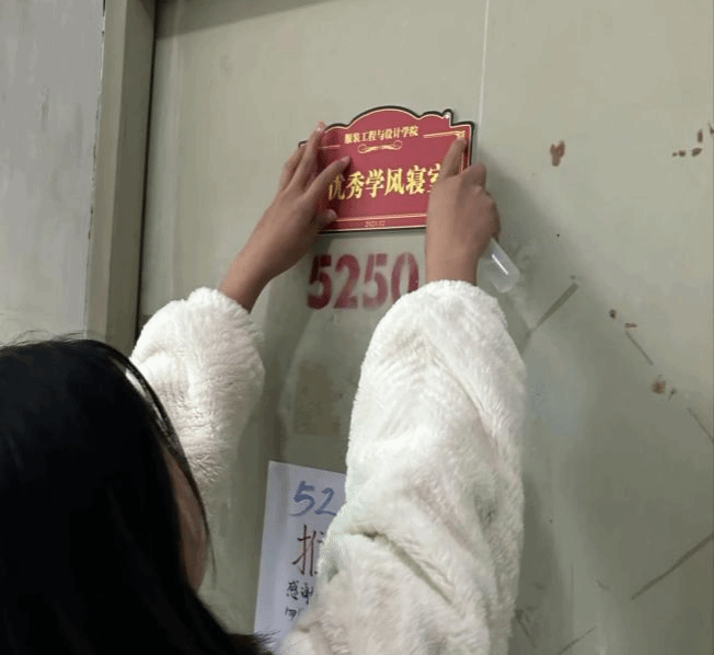 12月28日,由服装学院举行优秀学风寝室授牌仪式,为获得优秀学风寝室称号的42个寝室授予特别定制的门牌并进行了挂牌。