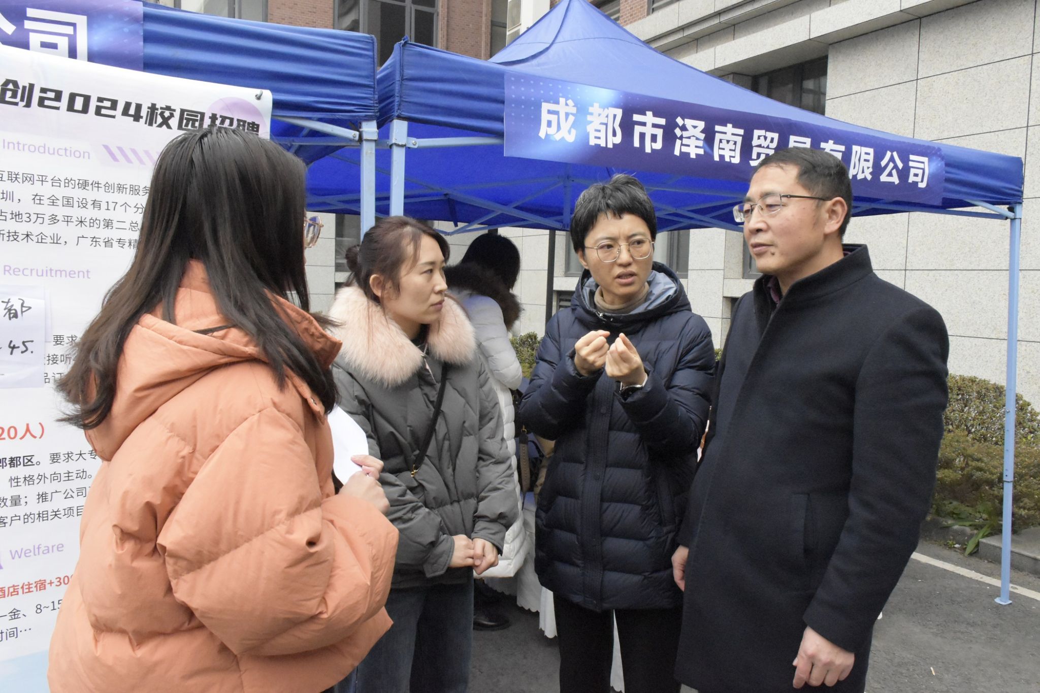 期间,学校校长孙锐、党政办主任朱瑶、学创处副处长刁家志等到现场指导,对用人单位进行走访,感谢企业对我校毕业生的认可,向学院领导和工作人员了解今年就业工作具体开展情况。孙锐希望学院做好就业宣传和指导工作,关注重点群体,拓宽就业渠道,让学生实现更加充分、更高质量就业。成都市人才服务中心领导也来到现场指导调研。