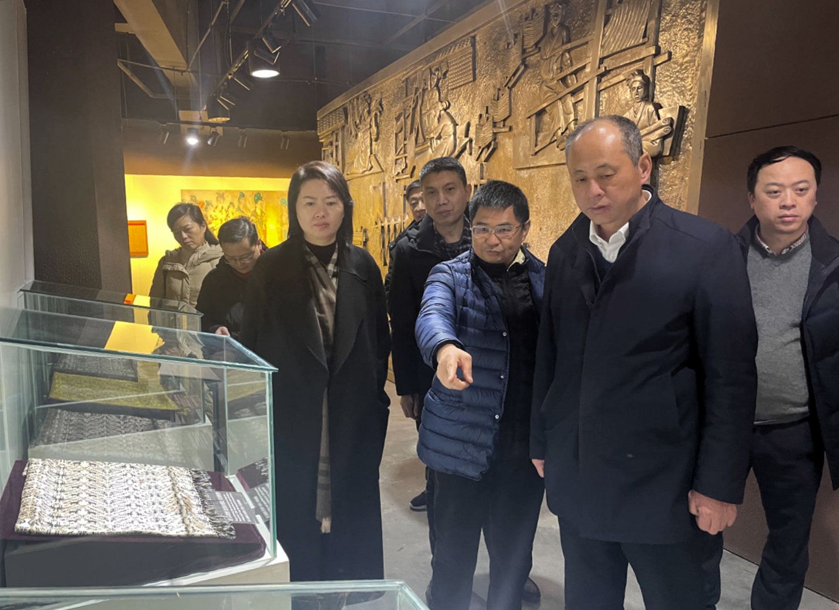 蔡玉波一行在四川省丝绸协会会长、四川朗瑞丝绸有限公司总经理吴金良等陪同下,实地调研锦门景区南方丝绸之路博物馆、丝绸历史文化街区、锦华馆等发展情况,详细了解锦门蜀锦蜀绣产业在传承发展、产品开发、活动推广、生产经营等情况。