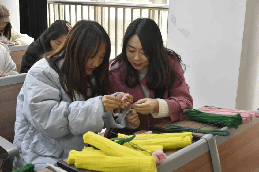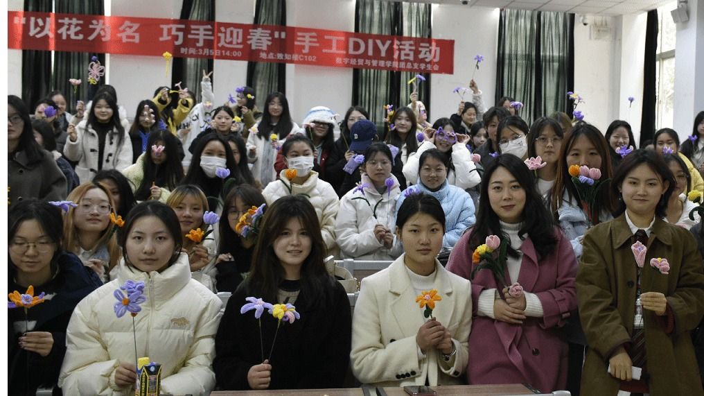 3月5日下午,数字经贸与管理学院团总支学生会心理部在南苑致知楼C102举行“以花为名,巧手迎春”女生节手工DIY活动,学院心理部指导老师贾虹宇和各班女生共同参与活动。