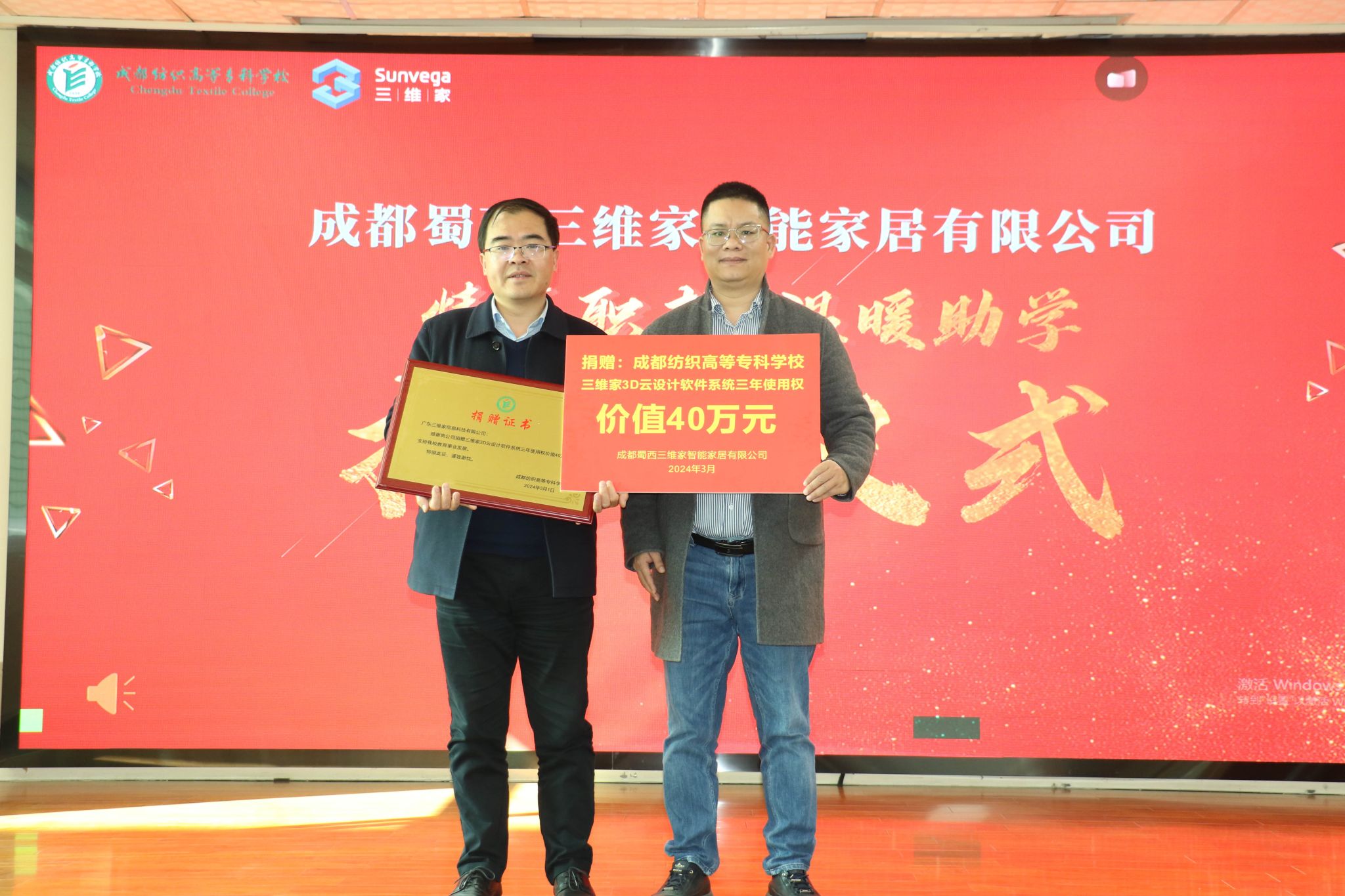 广东三维家信息科技有限公司为成都蜀西三维家智能家居有限公司的总公司,成立于2013年1月,是以家居产业为依托、依靠云计算、大数据和AI人工智能等多项核心技术打造的家居工业互联网平台,与国内外4000余家一线家居品牌达成战略合作,设计师用户超200万。此次向学校捐赠的三维家3D云设计软件系统包含橱柜设计软件、衣柜设计软件、铺砖设计软件、顶墙设计软件、水电设计软件等全套软件模块。