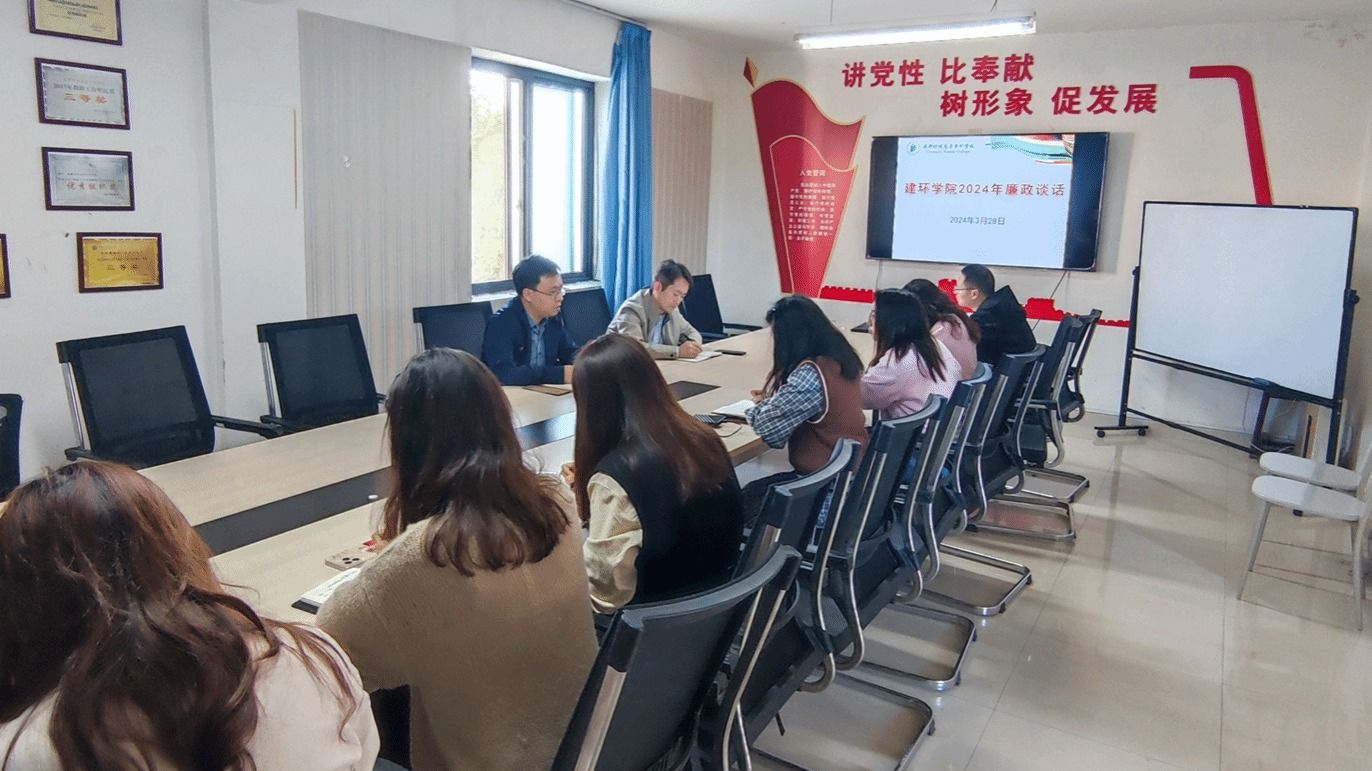 根据《中共成都纺织高等专科学校纪律检查委员会关于开展2024年廉政谈话的通知》要求,3月26日至28日,建环学院采取集中谈话和个别谈话相结合的方式,分层分类开展廉政谈话,进一步压紧压实全面从严治党责任,加强对干部职工的教育、监督和管理,上好新一年廉政教育“第一课”。