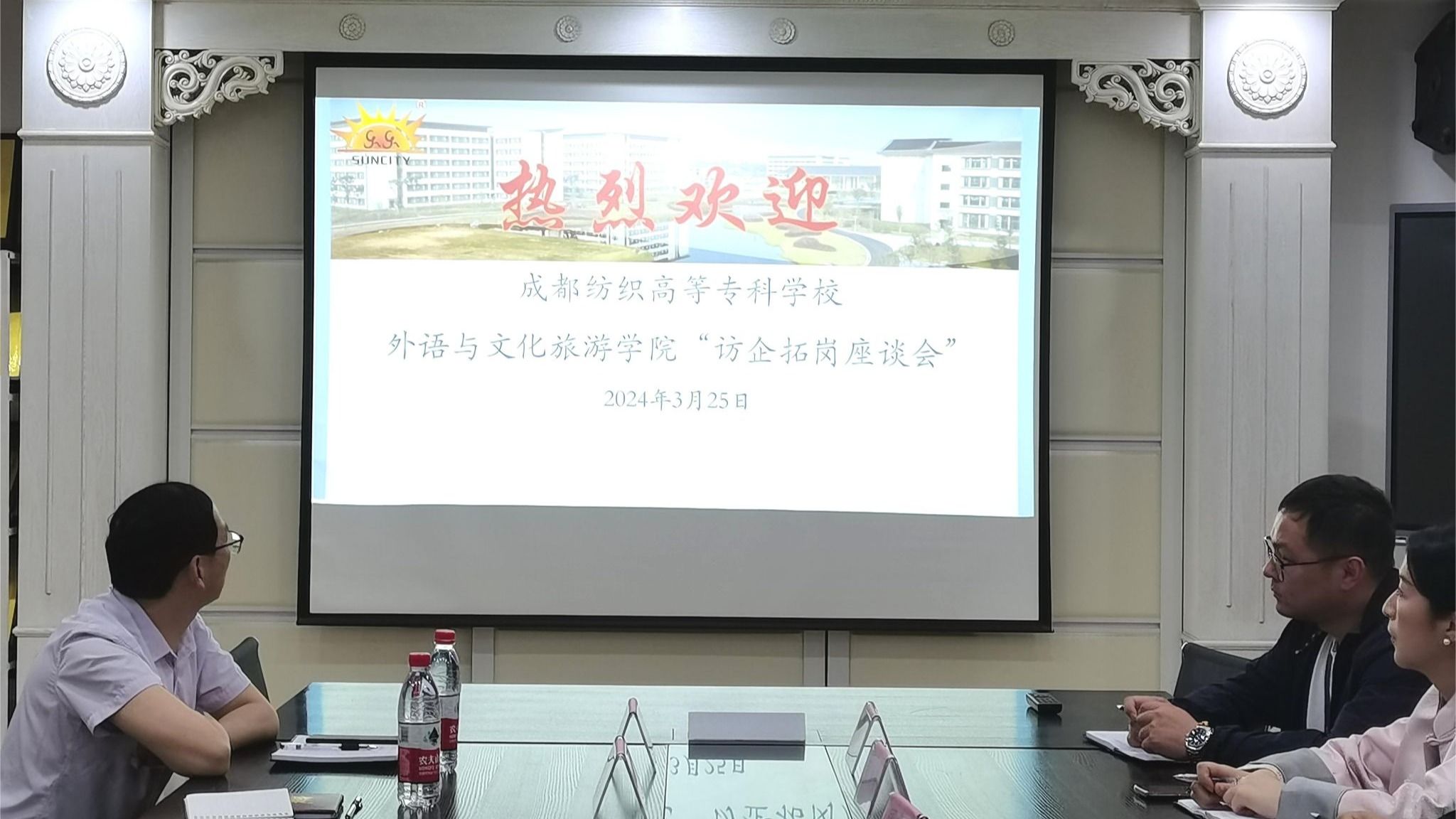 在久久太阳,公司总经理张赞、培训主管程琳璐等介绍了公司发展情况和公司经营业务。该公司专注于为浙江本地外贸企业提供外贸业务员和外贸技能培训等服务,同时从事各类门类生产、销售等业务。张赞表示,目前浙江永康、义乌等地对于从事外贸业务类人员需求量大,特别是商务英语专业的学生,这与学院人才培养方向高度契合。程琳璐反馈了学院在浙江实习学生的整体表现情况,高度赞扬我校学生的实习管理工作。双方就人才培养、实习就业、建立学生实习实践基地、搭建校企合作平台等方面进一步交流和探讨,并达成合作意向。