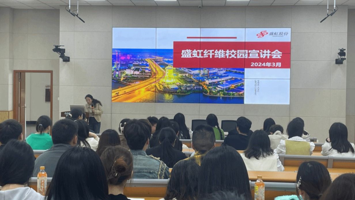 为抢抓毕业生就业关键期,学院主动联系了苏州盛虹纤维有限公司来校招聘。该公司上午参加完学校2024届毕业生春季双选会后,下午在明德楼一楼阶梯教室举行专场校园宣讲会,学院近100名学生参加宣讲会。