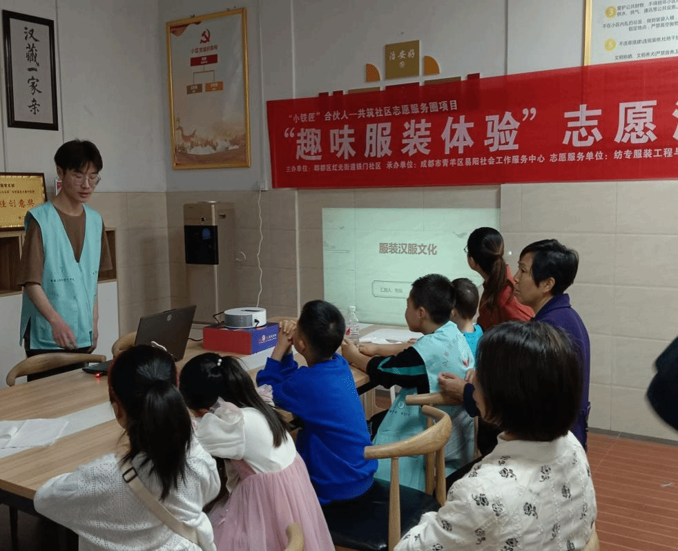4月14日,服装工程与设计学院前往铁门社区党群活动中心开展“匠心践行—爱在社区”社会实践之趣味服装体验活动。学院与社区共建实践平台,普及中华传统文化服装服饰知识,提高社区居民对中国服饰、服装的认识与了解,弘扬中华优秀传统文化,增强文化自信和民族自豪感。