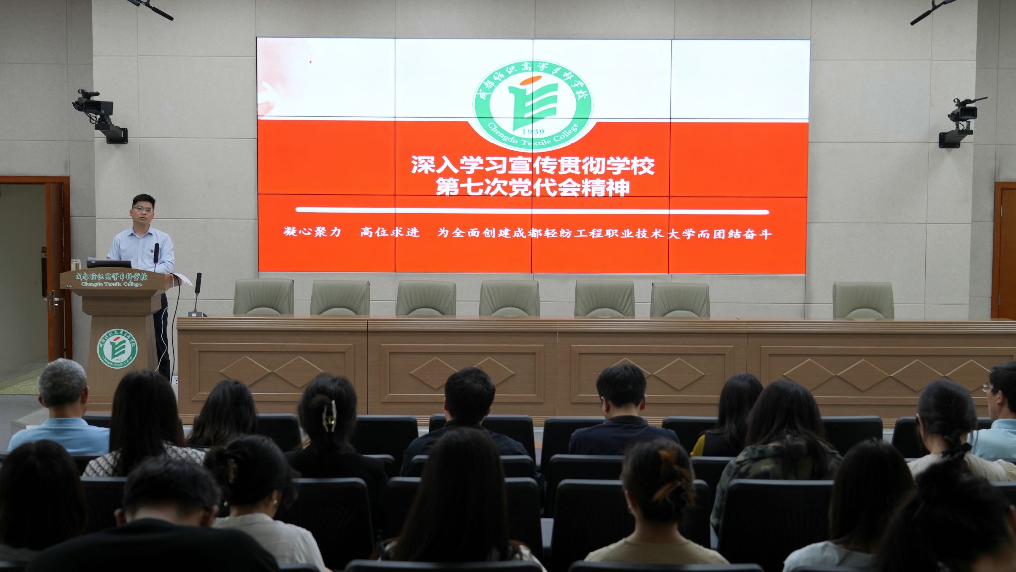 宣讲会上,刘文钦全面回顾了学校第六次党代会以来的主要工作与取得的成绩,总结过去的经验并详细阐述了学校全面开启创建职教本科的新征程,展望了学校未来的发展方向与目标。他强调了持续推进党的建设新的伟大工程的重要性,并对学校的“11575”发展战略进行了深入解读。