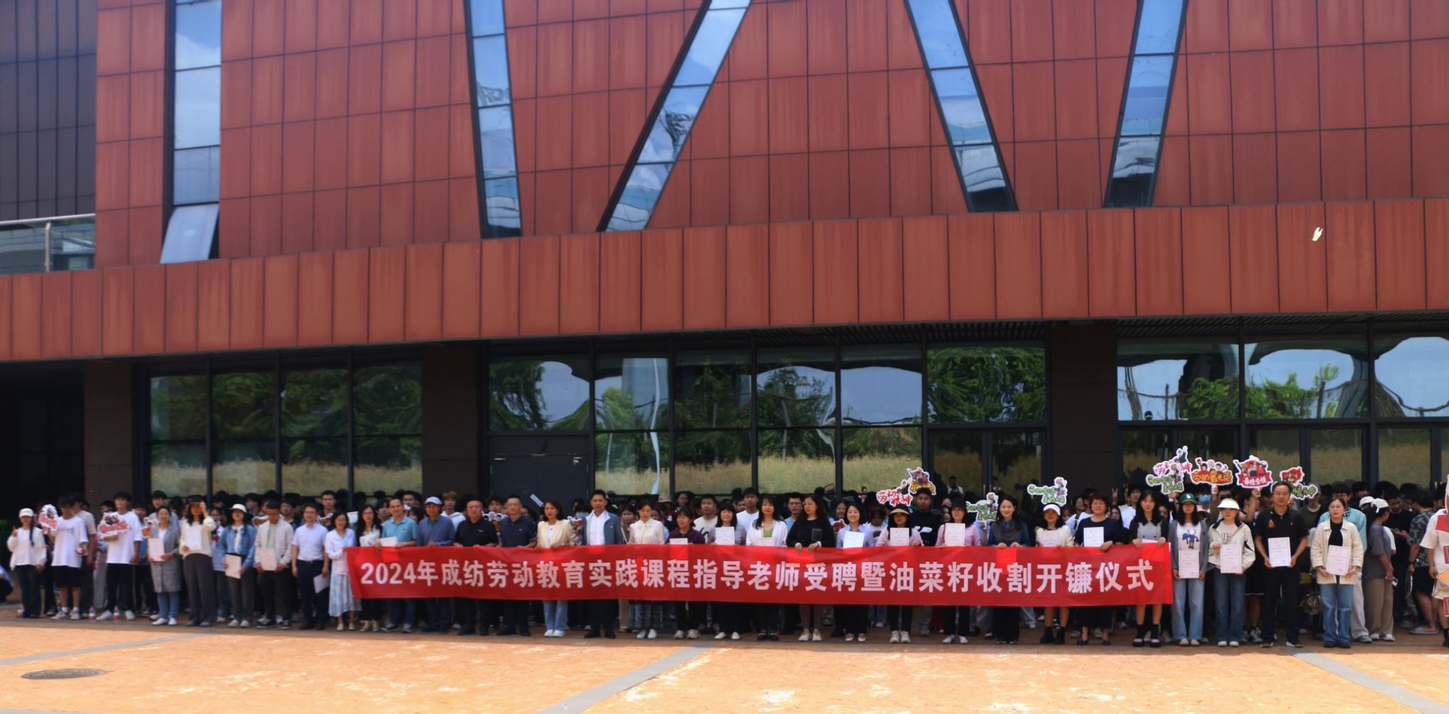 4月22日,学校在劳动教育种植实践基地举行2024年成纺劳动教育实践课程指导老师受聘暨油菜籽收割开镰仪式。党委常委、副校长蒲冰远出席,学创处相关负责人,各学院党总支书记、副书记以及负责劳动教育专职辅导员等230名师生参加活动。