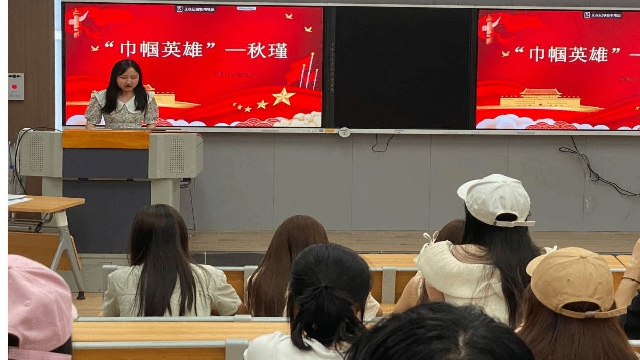 大学生理论宣讲团的同学应邀分享了独臂将军贺炳炎、巾帼英雄秋瑾和人民楷模朱彦夫的故事。贺炳炎将军的英勇事迹、秋瑾先生的爱国情怀以及人民楷模朱彦夫的钢铁意志,深深地感动和激励了在场同学,激发了大家为国家和民族贡献青春力量的决心。