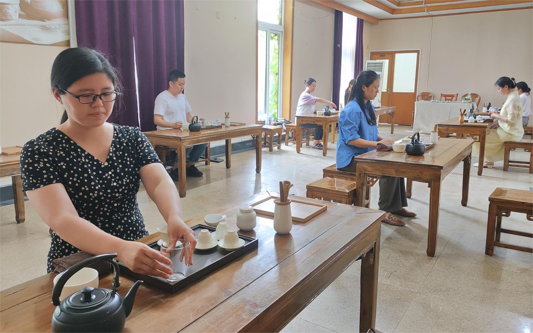 此次培训按照“以先进理念引导实践,在实践中学习先进理念”的思路,让学员们通过系统学习源远流长的茶文化知识,坚定“文化自信”,同时帮助他们熟练掌握各种茶艺技能,不断提升自我。一级评茶师、一级茶艺师杨婷婷,二级评茶师、高级茶艺师吕晞梅,高级茶艺师袁燕君,中级茶艺师梁洁等教师应邀授课,采用“理论+实操”方式进行茶艺知识讲授。学员们在老师的讲授和示范操作中,学习了茶艺的涵义、茶文化的基本知识和识茶认茶的方法,结合茶具和茶艺礼仪完成了泡茶的实操练习。