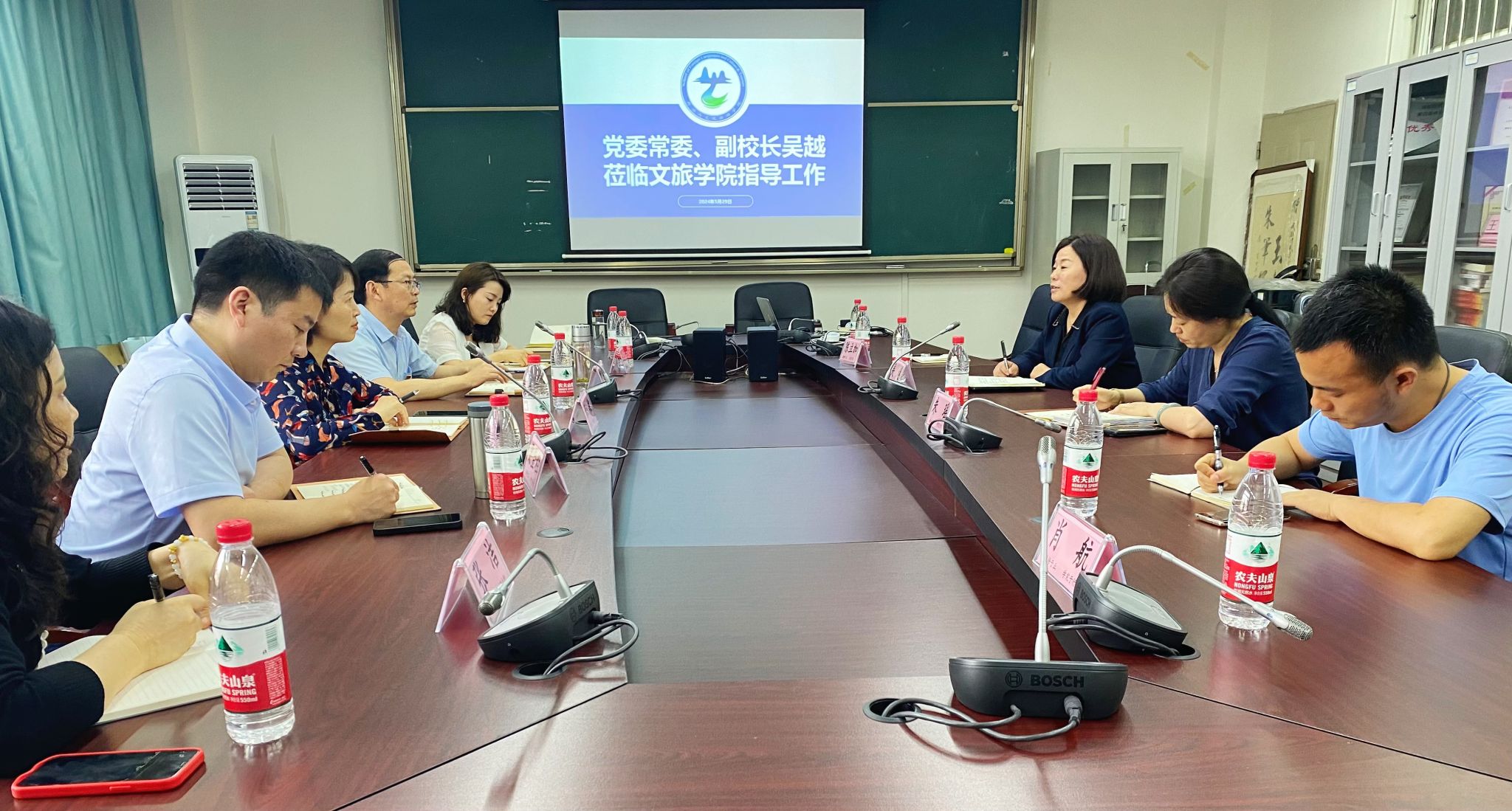 5月29日下午,学校党委常委、副校长吴越带队到文旅学院调研并指导工作,学校党政办主任朱瑶、安全与后勤保障处处长陈立加、建设处综合管理科科长崔伟陪同调研,文旅学院科级以上干部和专职组织员参加调研座谈会。