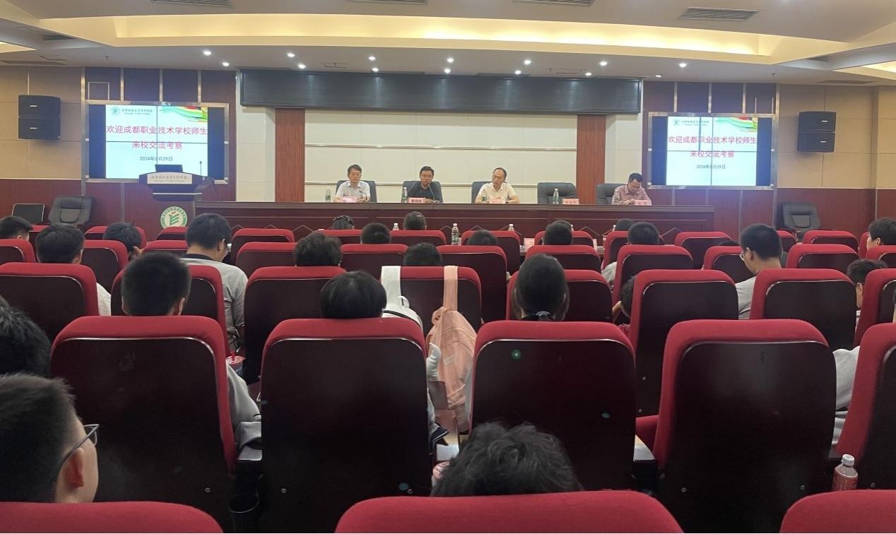 5月29日,成都职业技术学校80余名师生来到我校参观、交流。建环学院院长秦朝昭,党总支副书记(主持工作)鲜金宏,党总支副书记李华,党政办公室主任游媛,专职辅导员朱晓飞、季俊玲参加接待工作。