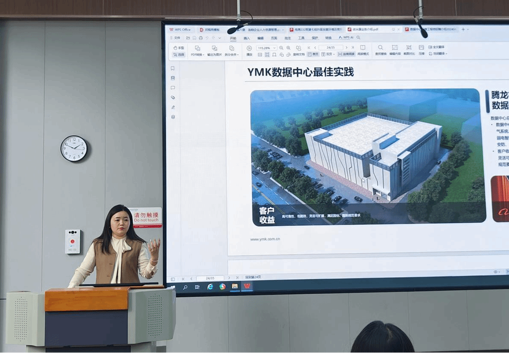 钟采芸介绍了公司概况及发展方向,重点介绍了学生进入依米康科技集团后的职业发展通道,使同学们清晰地了解选择订单班培养后,未来的职业发展方向。她还与现场的供热通风与空调工程技术专业学生进行互动。同学们就加入依米康订单班的条件、课程安排等问题进行询问,钟采芸和秦朝昭针对学生的提问进行了详细解答。