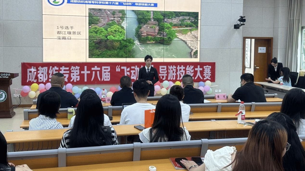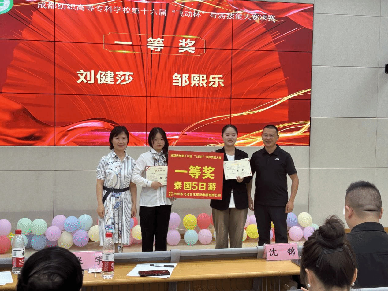 6月20日,成都纺织高等专科学校第十六届“飞动杯”导游技能大赛决赛在明德楼一楼阶梯教室举行。经过激烈角逐,23级旅游管理专业刘健莎、邹熙乐同学荣获一等奖,奖品为泰国5日游;肖杨、周佳乐、张雨萌、卫甜甜同学获得二等奖,九寨沟3日游;谢叶莉、石清清、施定雯、杜世佳、陈熙、牛玉娇同学获得三等奖,四姑娘山2日游。另有18名同学获优秀奖。