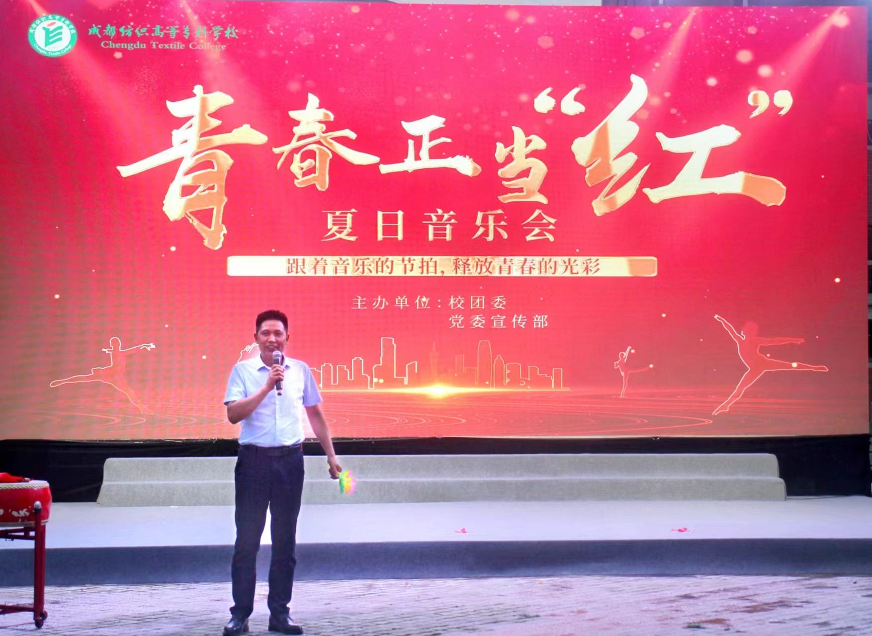 6月25日晚,由校团委和党委宣传部联合主办、金梭大学生艺术团承办的“青春正当红”草坪音乐会在北苑图书馆广场举行。学校党委常委、副校长蒲冰远、校团委副书记徐瑾、部分学院团总支书记来到现场,与2000多名成纺学子一起以星空为幕、以草坪为席,共同感受这场青春与热血的视听盛宴。