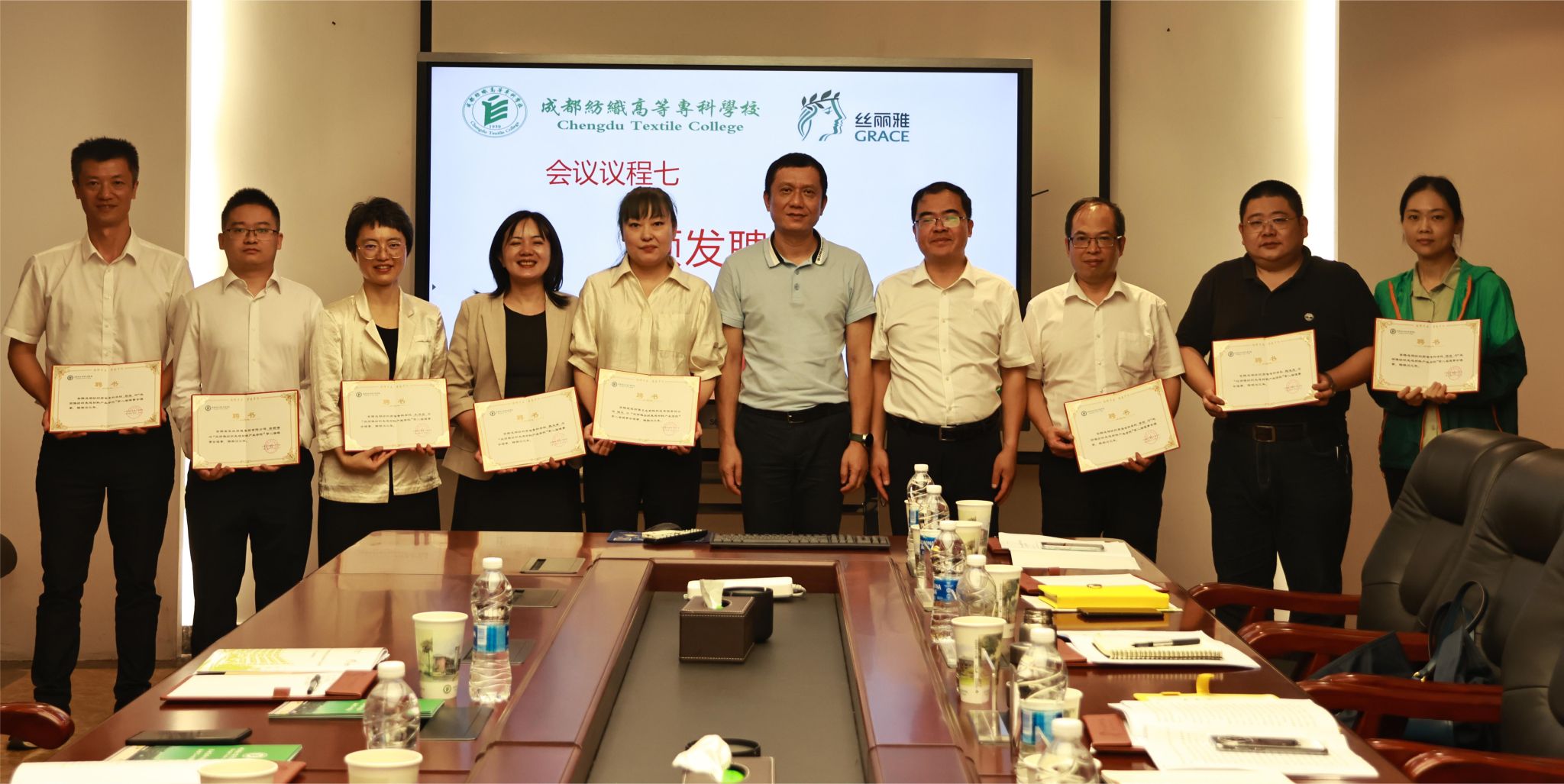 会议审议并一致通过了成都纺专·丝丽雅纺织先进材料产业学院第二届理事会、秘书处和院领导名单。孙锐代表学校向丝丽雅集团赠送学校织绣重点实验室出品的蜀锦,孙锐、李卫、李明富向产业学院第二届理事会成员及领导班子成员颁发了聘书。