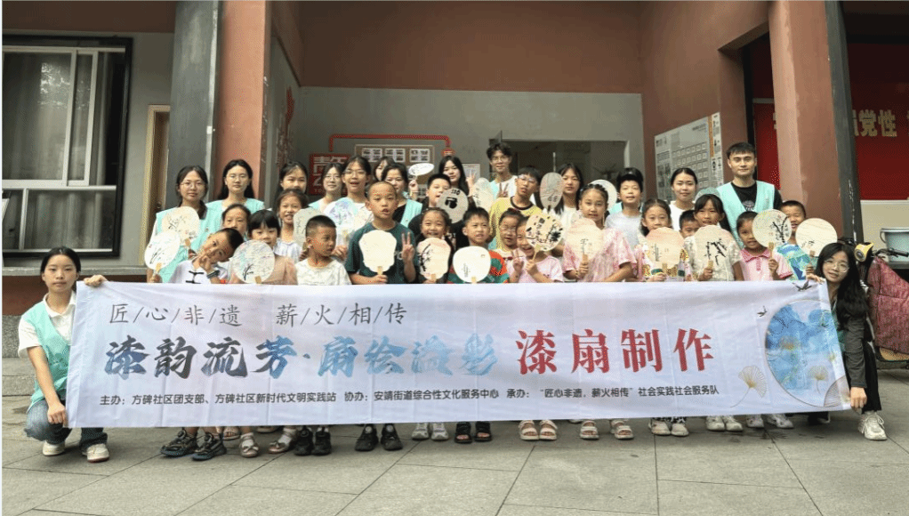 7月15日,服装学院“匠心非遗,薪火相传”2024年暑期社会实践团队在方碑社区开展“漆韵流芳,扇绘溢彩”——非遗技艺漆扇制作活动,寓教于乐,让社区的小朋友们更直观地感受到传统文化的魅力,增强他们的文化认同感和自豪感。