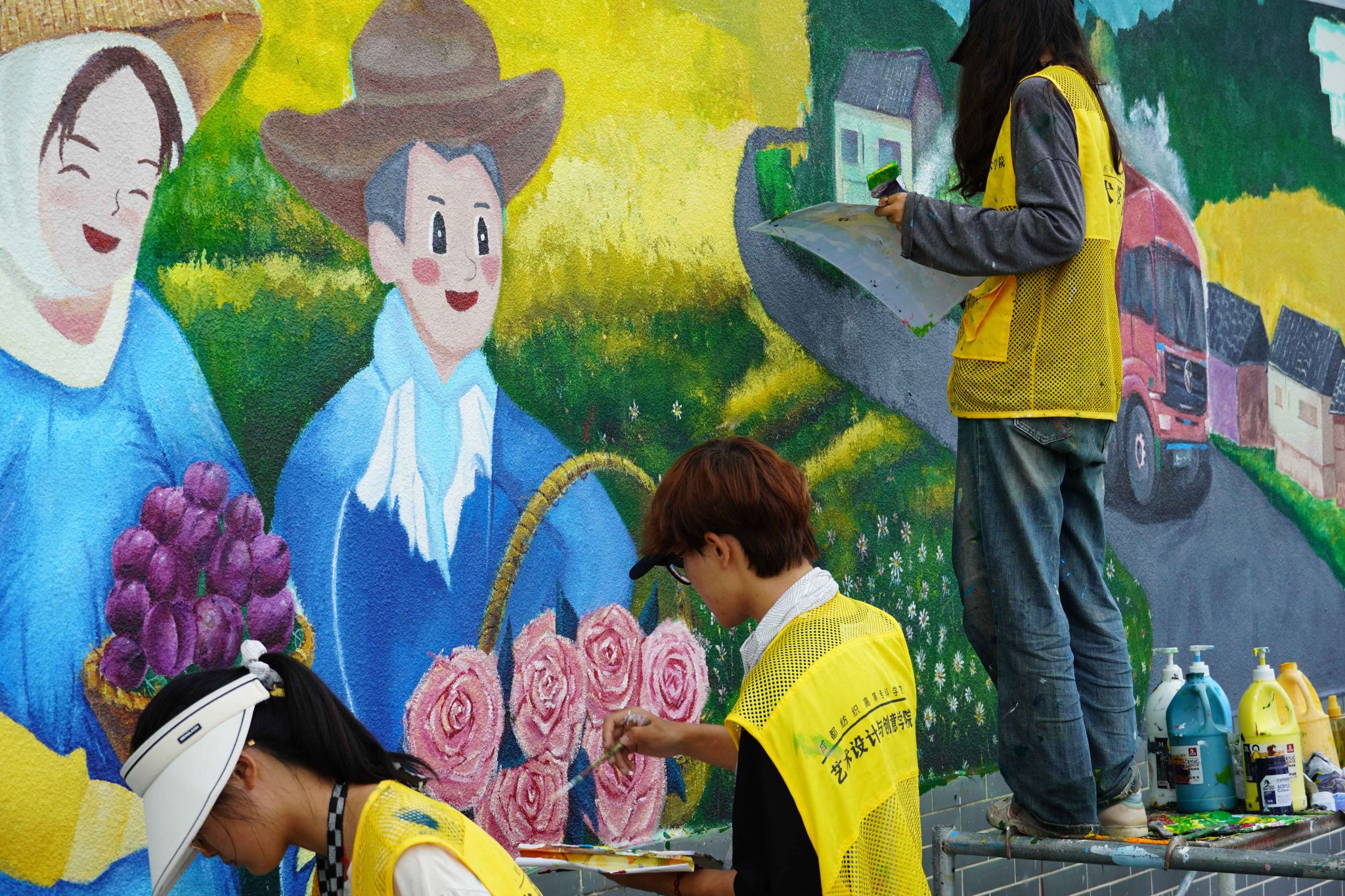 墙绘组则以其精湛的专业技能和不懈的努力,为万年村的异地扶贫集中安置点带来显著的改变。他们精心选取具有当地特色的主题,以墙绘为媒介,将创意元素融入村庄的自然景观之中,为村庄增添了一抹亮丽的色彩。面对墙面粗糙、蚊虫叮咬、天气突变等重重困难,团队成员们团结一心,发扬工匠精神,克服一个又一个难题。最终,一幅幅生动形象、寓意深刻的墙绘作品呈现在村民面前,赢得大家的广泛赞誉。这些墙绘作品美化了村庄环境,传播了当地文化,提升了村庄的整体形象。