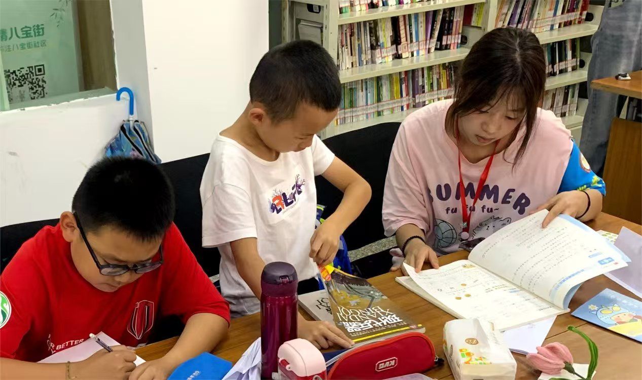 为了传递社区的关爱与温暖,帮助同学们更好地完成课后作业,学院志愿者们每天陪伴孩子们做作业,对孩子们的语文、数学、英语等学科作业进行课业辅导,耐心询问他们在学习上遇到的难题和问题,并对其一一解答。