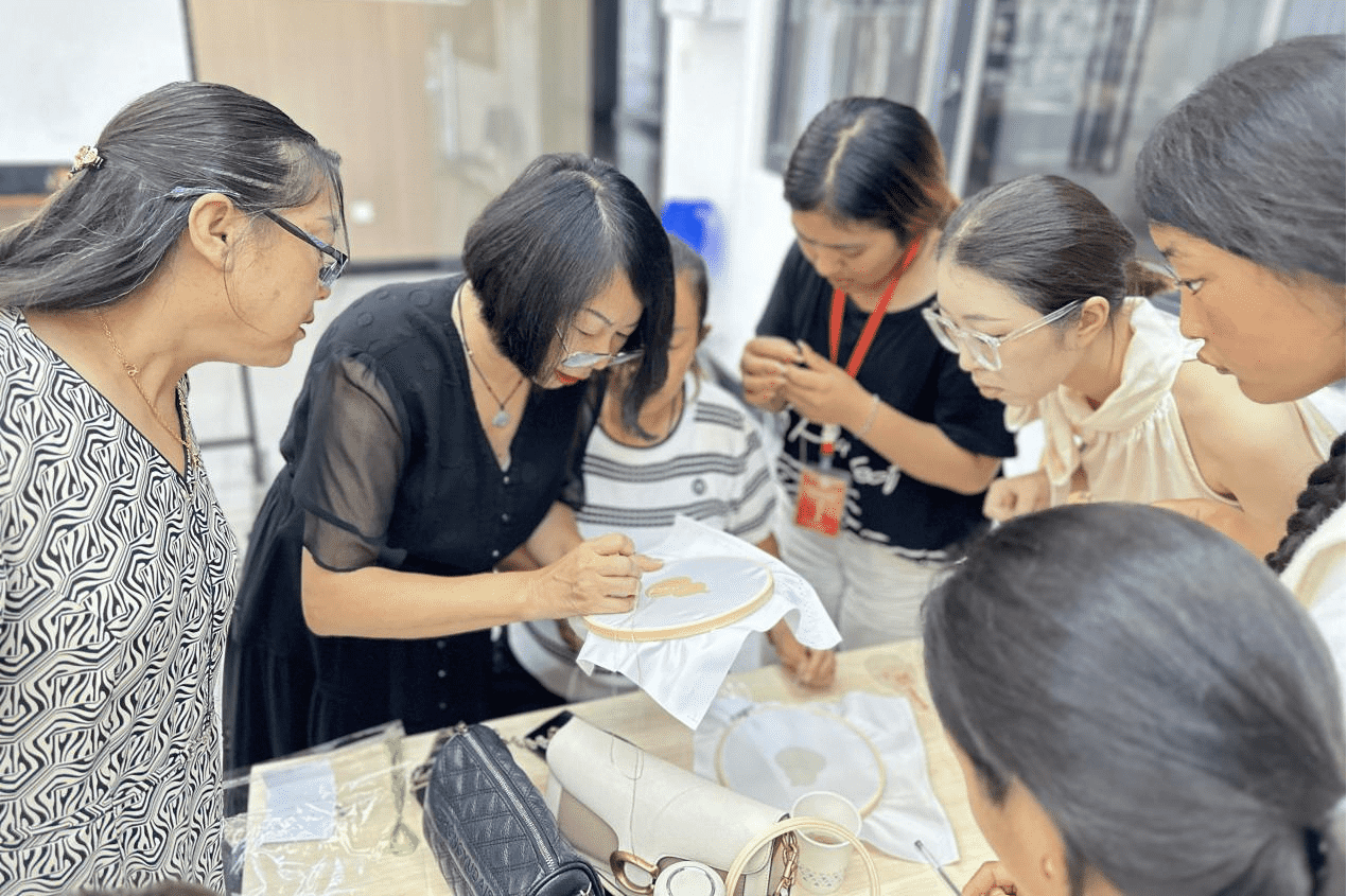本次培训由阿坝州妇女联合会主办,四川新闻网传媒(集团)股份有限公司与成都纺织高等专科学校联合承办。培训为期9天,邀请了京绣大师金馨、蜀绣大师孟德芝以及设计、工艺等相关专业的教授、副教授和技术能手作为培训导师。培训内容涵盖文化创新与新媒体运营、手工刺绣产品创新与实践、皮具产品开发与实践、民族元素文创服饰产品创作以及参观学习跨界交流等多个模块。在导师的悉心指导下,学员们完成了一件件精美的作品,同时结合民族特色元素,设计并制作出实用且具有创意的产品。