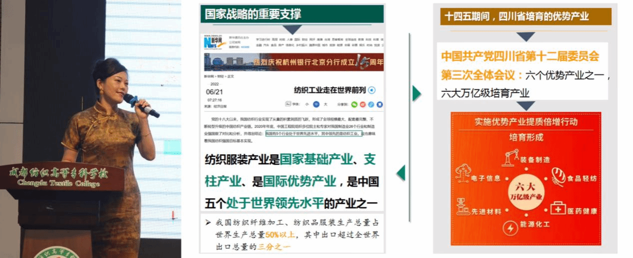 李晓岩从以“衣”为人、 以“衣”懂人、以“衣”爱人、以“衣”成人四个方面,深入详尽地阐述了服装学院的学院史、平台梦、荣誉墙、职业情;以当下服装行业发展职业岗位人才需求为导向,鼓励同学们看清未来就业目标,脚踏实地认真学习,做“能吃苦、技艺精、善创造”的成纺学子。