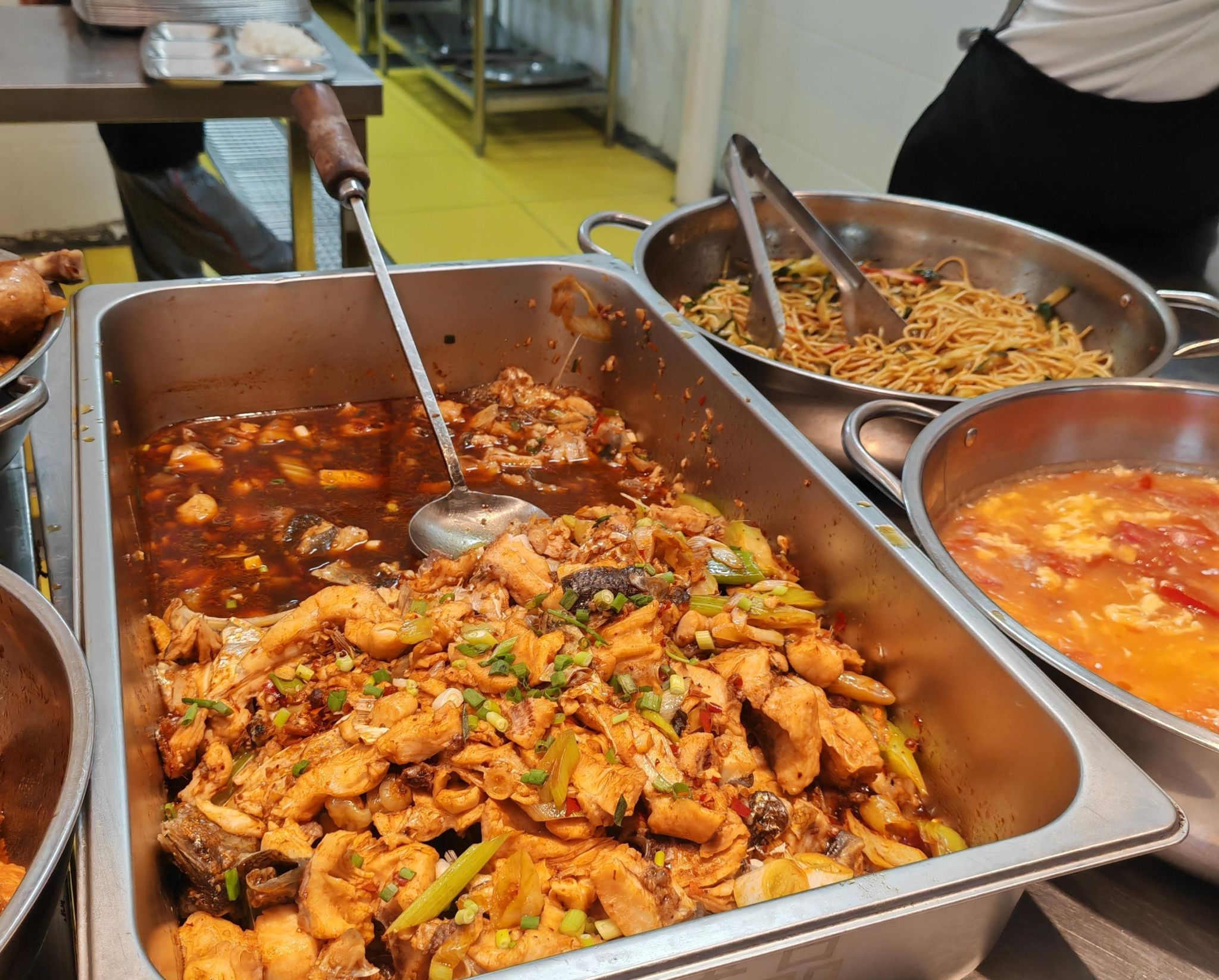 此次捕鱼活动,为保障教职工捕鱼安全,提升捕鱼的体验感,保障处提前安排,准备大量的渔网、捕鱼服等,并拉网辅助捕鱼,做足了准备;将捕获的肥美鲜鱼送往食堂精心烹制后,学校通过保障餐窗口供全校师生免费品尝,让全校师生共享丰收的喜悦。