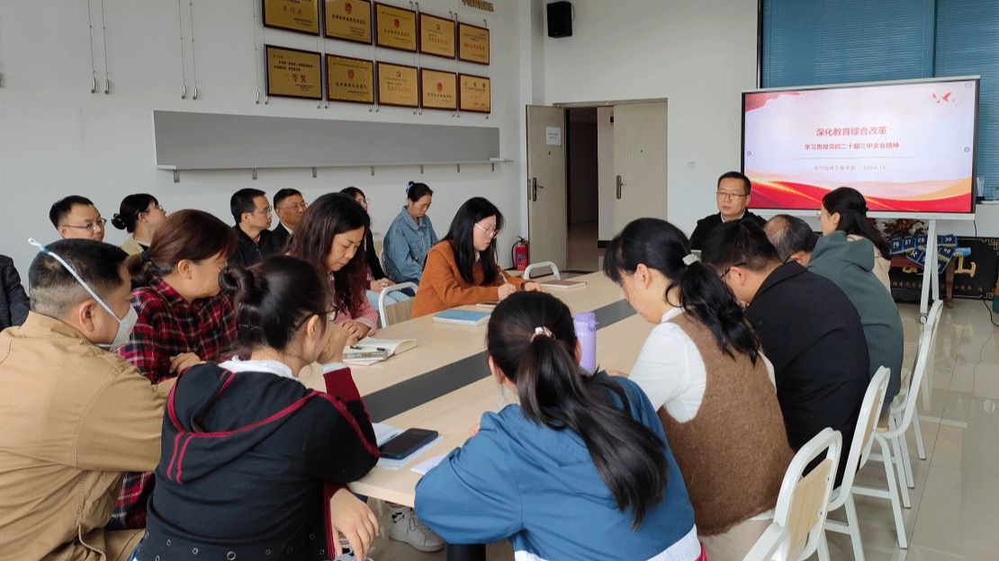 10月8日,电气信息工程学院党总支在笃行苑C410召开学习贯彻党的二十届三中全会精神专题学习会。学院党总支书记姚玲峰作专题宣讲,全体党员教师参加。