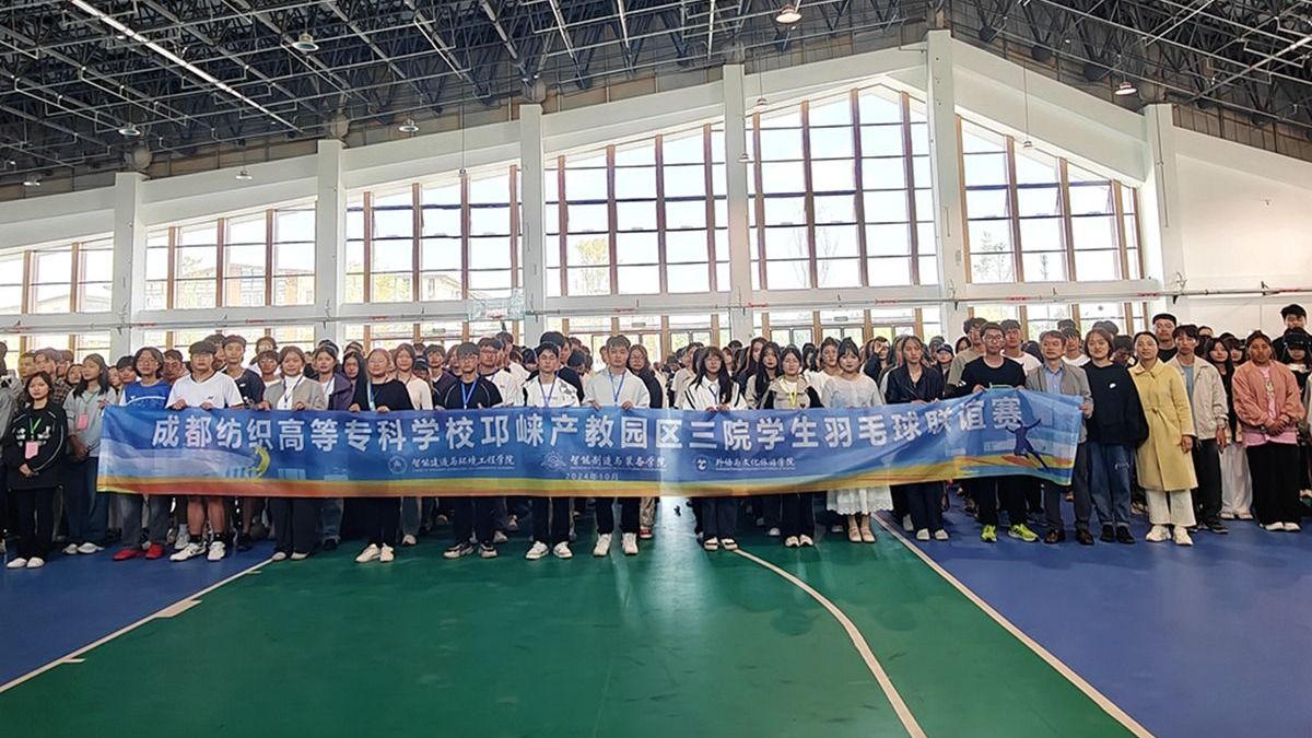 由建环学院、文旅学院、智造学院联合举办的邛崃产教园区三院学生羽毛球联谊赛,于10月22日在邛崃产教园区体育馆开赛。建环学院党总支副书记李华、季俊玲老师,文旅学院蒲荔塬老师及三院300余名学生参加了比赛开幕式。