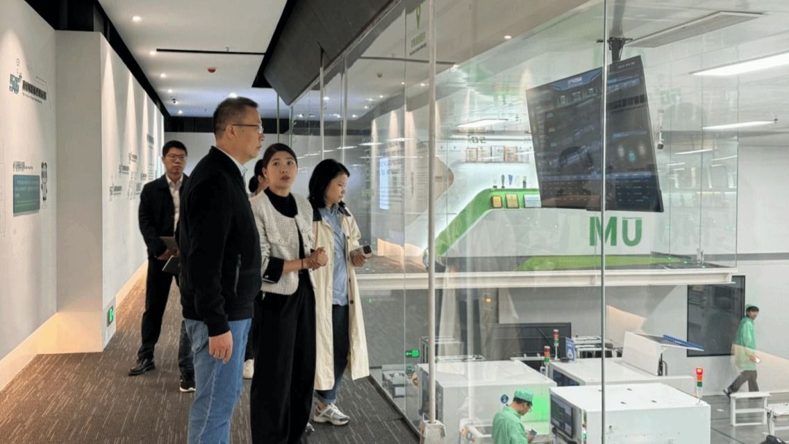 姚玲峰一行在微网优联人事部经理赖涂欢陪同下,参观其位于新都区高新技术产业园的Wi-Fi智能终端产业园基地,深入考察5G智慧工厂全自动化产线,详细了解公司的发展历程、经营策略、发展目标和人才需求情况。