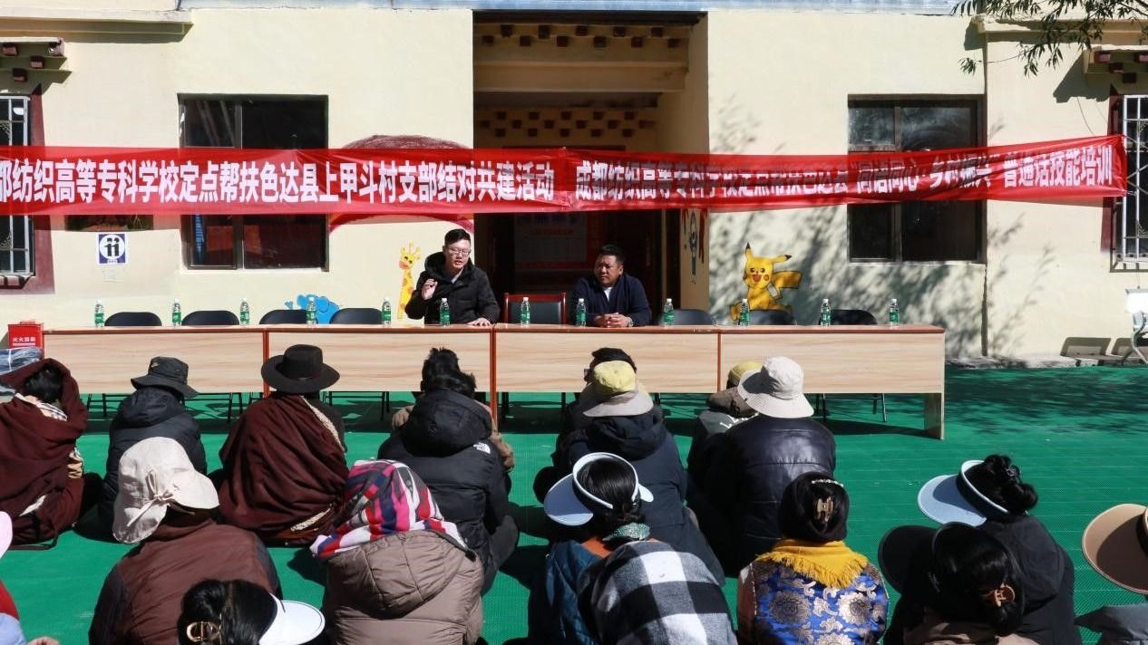 10月22日,人文与通识教育学院直属党支部教师常海峰同志随学校党委常委、副校长刘莉一行前往色达县杨各乡上甲斗村开展党建结对共建和普通话推广活动。