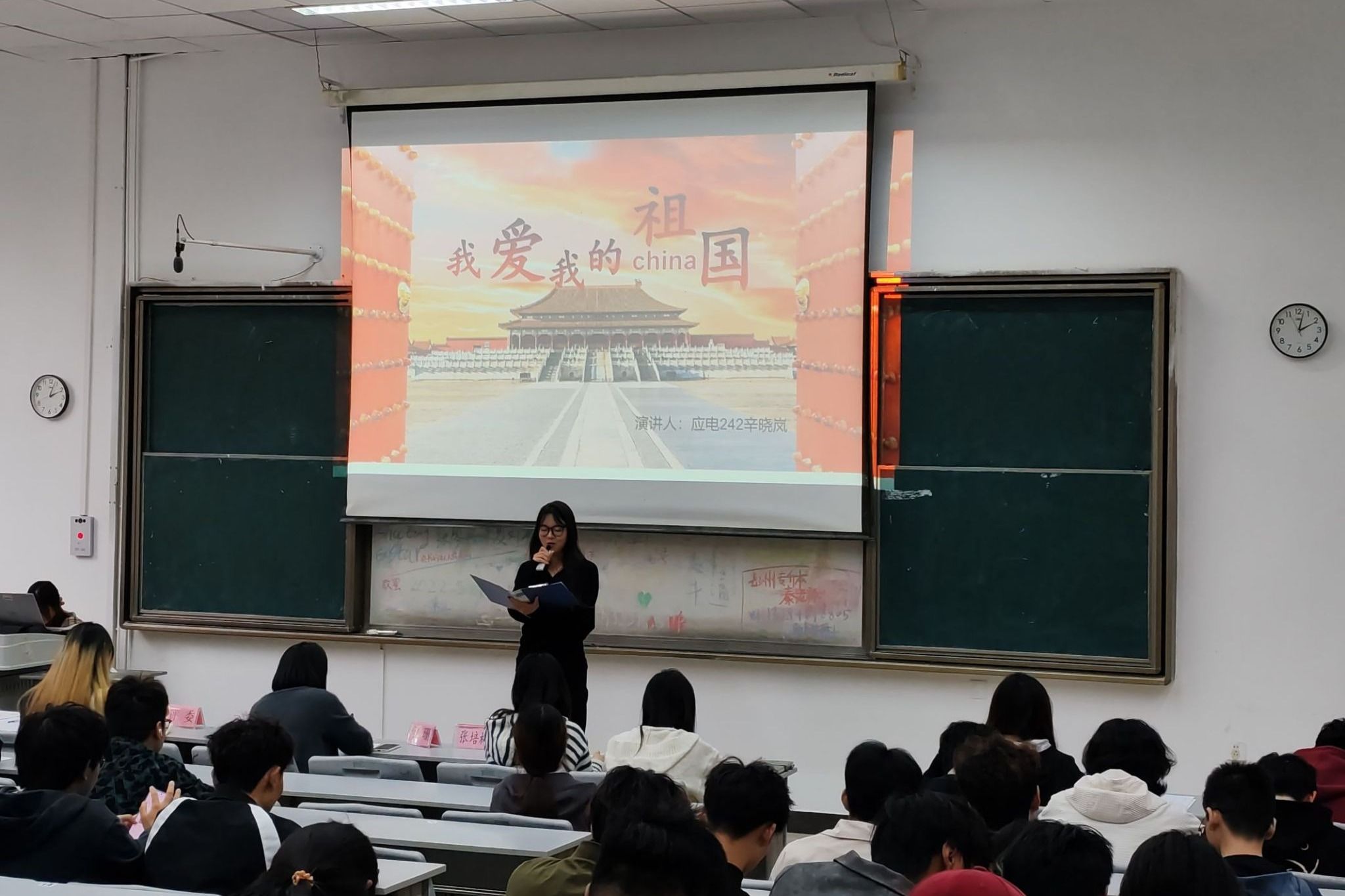 10月29日,电信学院在致知楼C103开展“我和我的祖国”演讲比赛。学院专职组织员敬珊老师,专职辅导员樊璠、张培林老师和大一、大二各班同学参加活动。活动由学院党理小组组织。