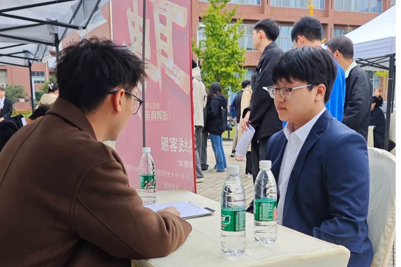 11月12日下午,建环学院在北苑图书馆广场举办2025届毕业生秋季双选会。建环学院院长秦朝昭、党总支副书记(主持工作)鲜金宏、毕业班专任教师及辅导员到场,与企业单位进行沟通交流,并为现场学生提出的就业相关问题答疑解惑。