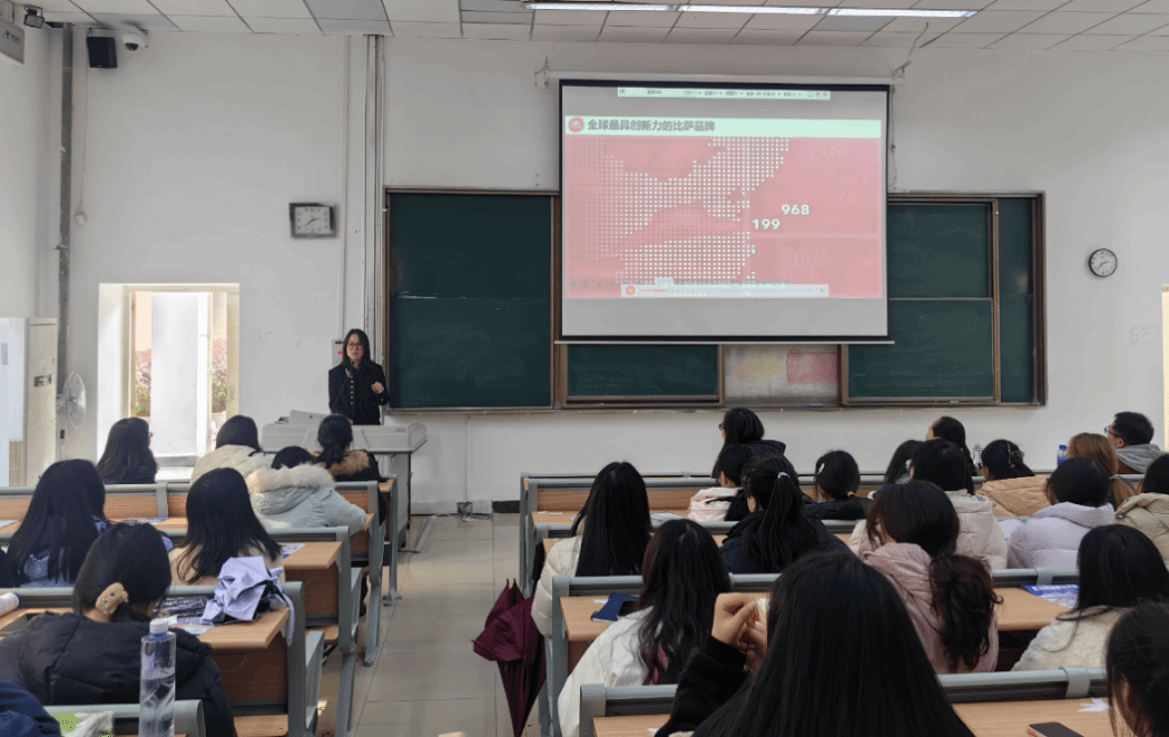 刘科秀为同学们详细介绍了必胜客的基本情况以及此次营销比赛的赛制,强调比赛不仅是一次展示自我的平台,更是一次难得的职场体验机会。马行天对项目企划进行了深入讲解,引导同学们学习如何制定一场成功的营销企划,邀请同学们参与必胜客线下门店的营销活动。