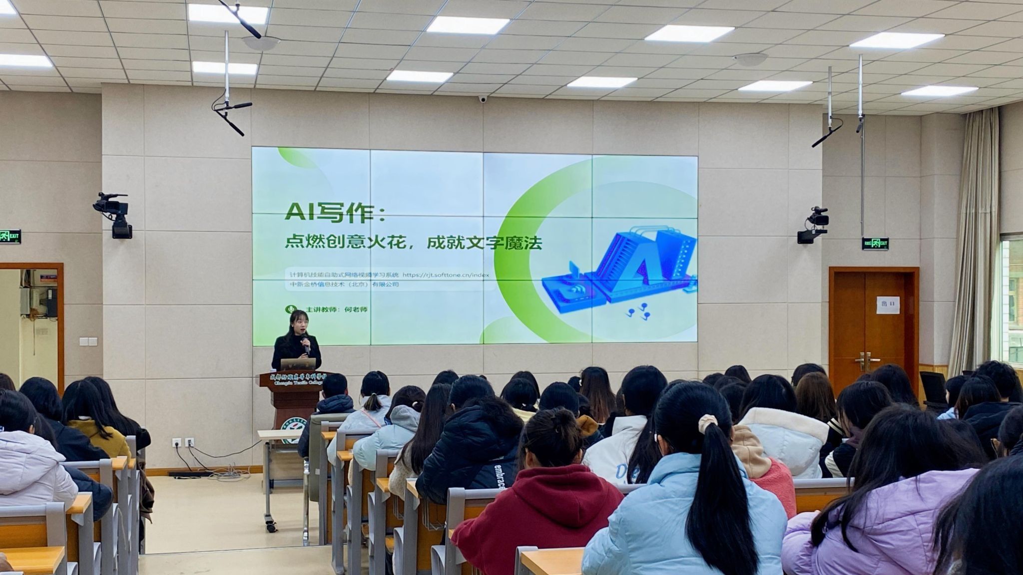 活动还重点介绍了如何使用“软件通”平台AI学习专区。全校师生均可通过该平台免费获取系统化课程资源,持续提升智能写作等职业数字素养。有同学兴奋地表示:“这就像给我们配了个‘AI导师’”。