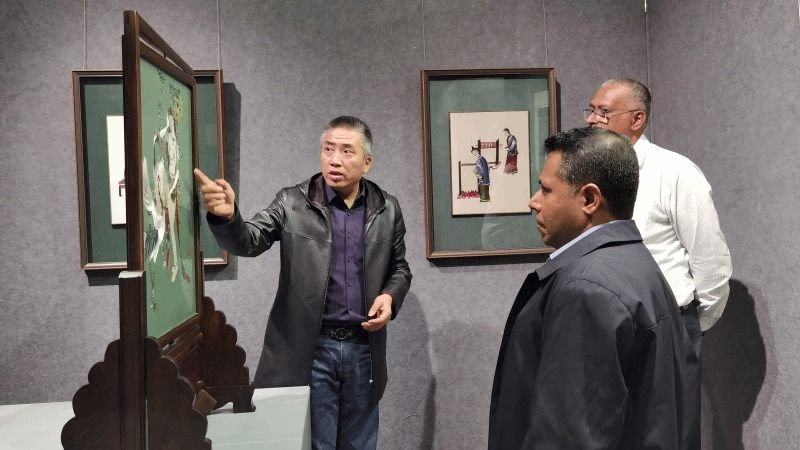 座谈会前,在学校产教交流处处长童晓晖、文旅学院副院长王敏陪同下,佩拉德尼亚大学来宾参观了学校施耐德电气绿色低碳技术应用中心、织绣技艺非遗数字化保护与传承四川省文化和旅游厅重点实验室和学校校史馆。特伦斯-马杜吉特一行对学校传承非遗技艺、保护非遗文化的办学水平表示赞叹,对学校产教融合、校企合作的深度表示高度认可。