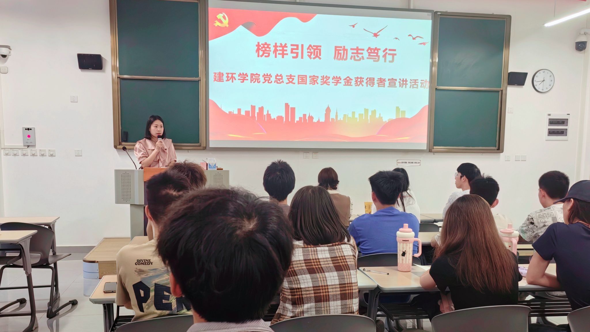 5月12日,建环学院党总支在知著楼B101开展“榜样引领·励志笃行”国家奖学金获得者宣讲活动。2025年上半年参训发展对象、第71期参训入党积极分子参加活动。活动由专职组织员甘艳丽主持。