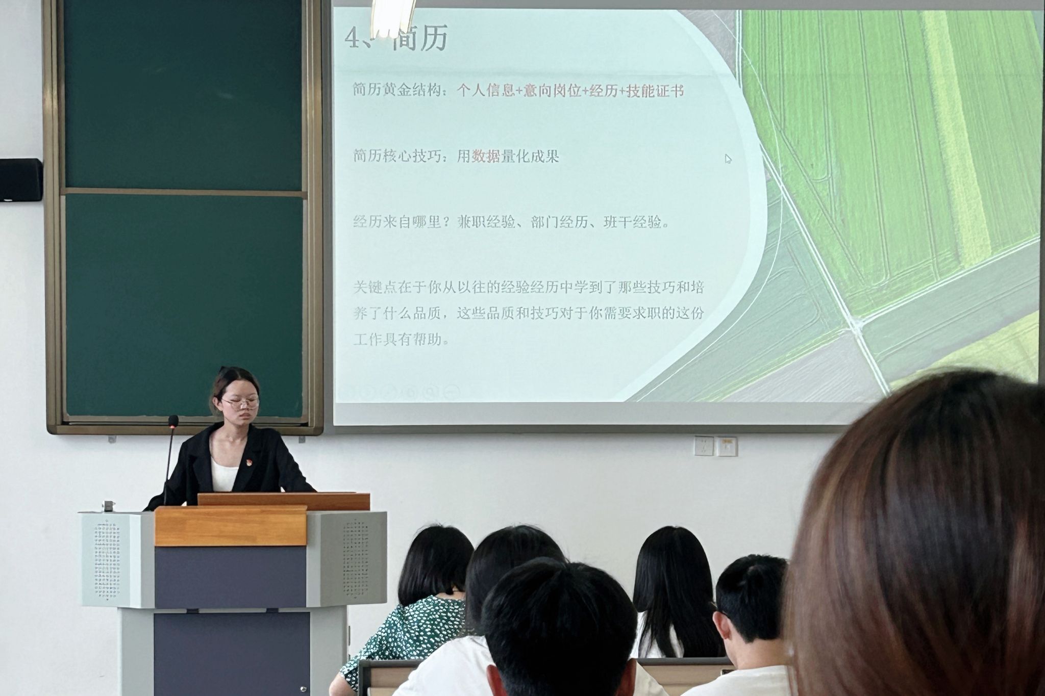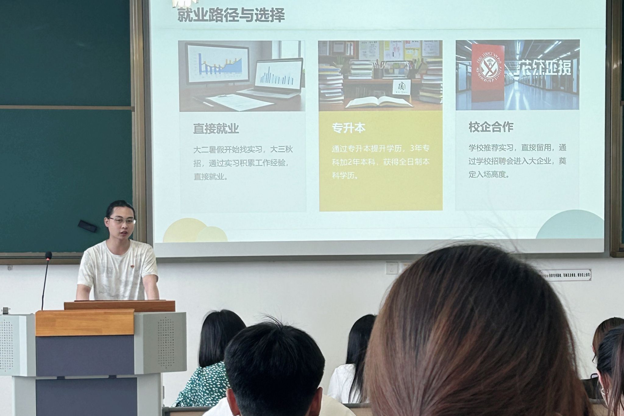 甘艳丽以三“实”即经验扎实、内容充实、效果务实为关键词对活动进行总结,并对同学们提出三点期望:一是保持清醒认知。结合自身优势与行业趋势,合理规划职业路径,避免盲目跟风。二是强化行动意识。将今天学到的方法转化为具体计划,以“早准备、早行动”的态度应对竞争。三是拓宽就业渠道。专业对口是相对的,但不是绝对的。要量力而行,切忌好高骛远。