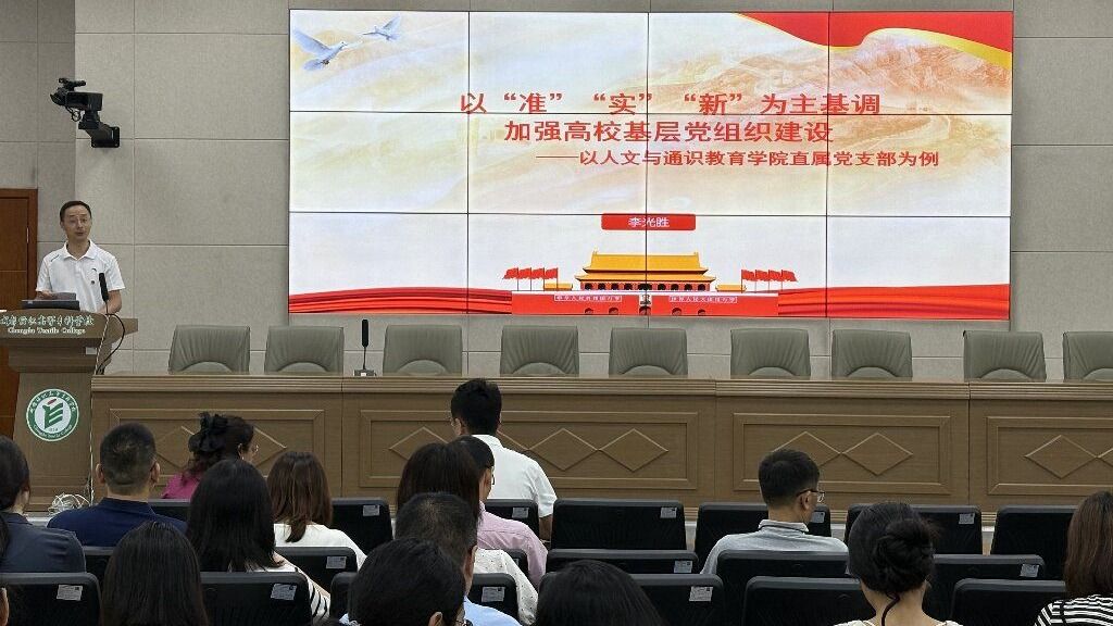 李光胜作《以“准”“实”“新”为主基调加强高校基层党组织建设——以人文与通识教育学院直属党支部为例》专题培训。培训从三个维度展开:一是聚焦“准”,回答“我是谁?我能做什么?”,明确基层党组织定位与职责;二是突出“实”,强调把工作“落到实处、做到细处、干到深处”,彰显务实作风;三是立足“新”,探索“最新颖的概括、最科学的凝练”,激发基层党建创新活力。他分享了通识学院直属党支部在支部规范化建设、党建与业务工作融合、支部品牌打造等方面的具体实践案例,既有理论高度,又有落地实施的具体路径,为支部党建工作提供了新思路、新方法。