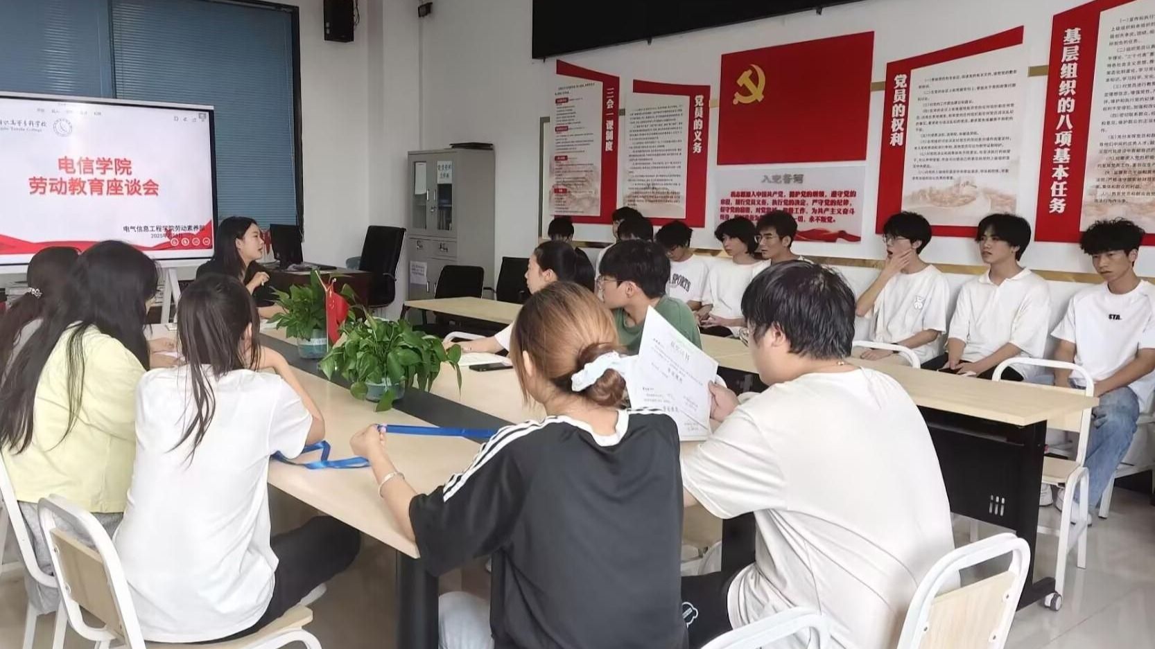 为深入贯彻落实劳动教育精神,切实提升大学生劳动素养,破解劳动教育实践中的痛点与难点,电信学院于7月8日开展劳动教育座谈会。学院党总支书记姚玲峰、劳动教育指导老师景秋萍、劳动素养部干事及2024级学生代表参加座谈。