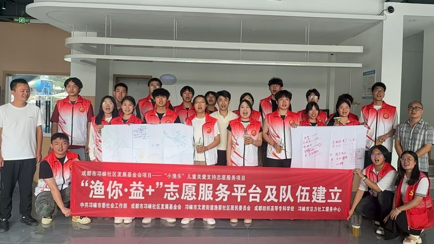 下午3点半,活动迎来重要环节——智造学院“三下乡”团队联合中共邛崃市委社会工作部、成都市邛崃社区发展基金会、邛崃市文君街道渔箭社区居民委员会、邛崃市注力社工服务中心,共同成立“渔你·益+”志愿服务平台。仪式现场,主办方代表共同为平台揭牌,志愿者与社区居民代表共同宣读《志愿服务倡议书》:“从今天起,我们都是‘益+’家人!”